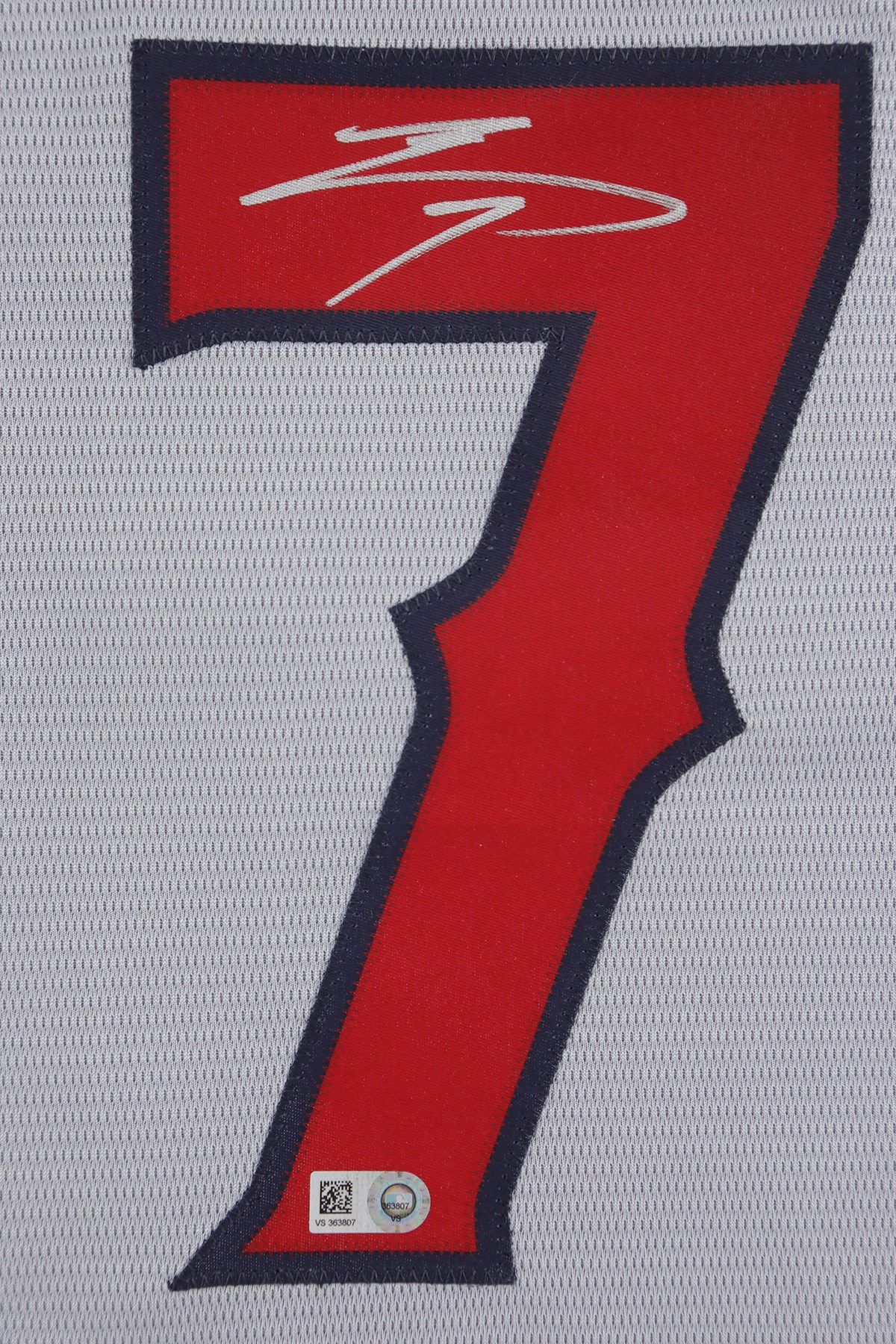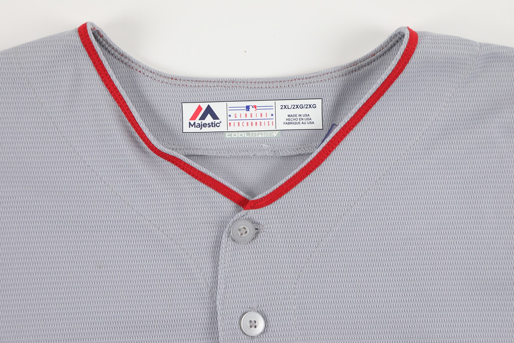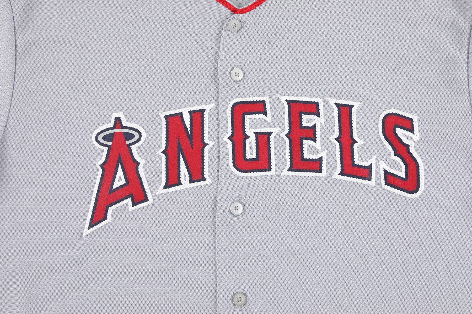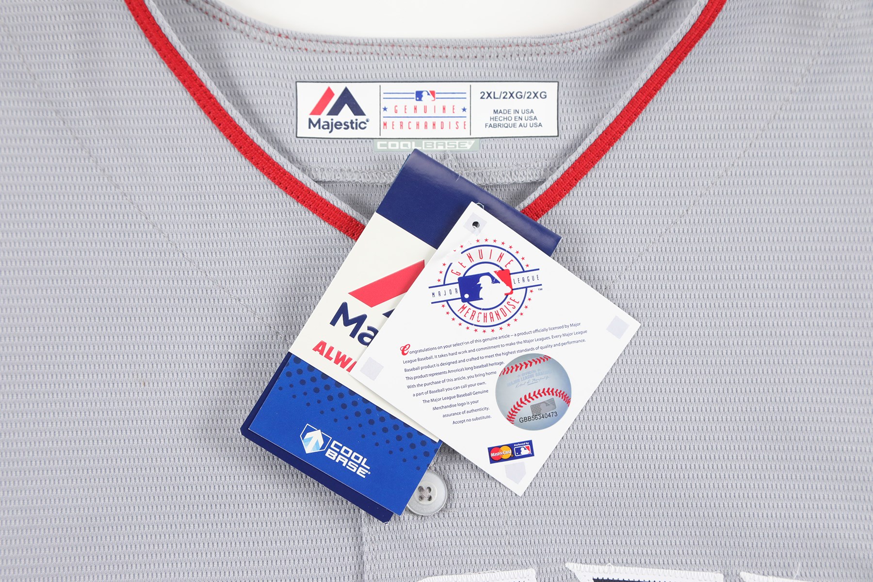 The offered signed, gray jersey has three tags in the collar: A Majestic Manufacturer's tag; MLB Genuine Merchandise; A Made in USA tag showing size "2XL". Across the chest is "ANGELS" in sewn-on red letters with midnight blue and white trim. The left sleeve has a Majestic tag. Below the above-named tags is an affixed "COOL BASE" tag. Six clear buttons run vertically down the front. On the back, outside collar is a a sewn-0n MLB logo. Below the back collar logo is "OHTANI", in sewn-on block letters with midnight blue trim. Below the name is "17", in red sewn-on numerals, with midnight blue trim. Ohtani signed the top of the numeral "7" in his number "17", using a silver marker. At the bottom of the aforementioned "7" is affixed an MLB hologram (VS 363807). The offered signed Ohtani jersey has never been worn, and it is in EXCELLENT condition. With Ohtani in the running for the best two-way player of all-time, an Shohei Ohtani signed jersey will become a prized collectible.