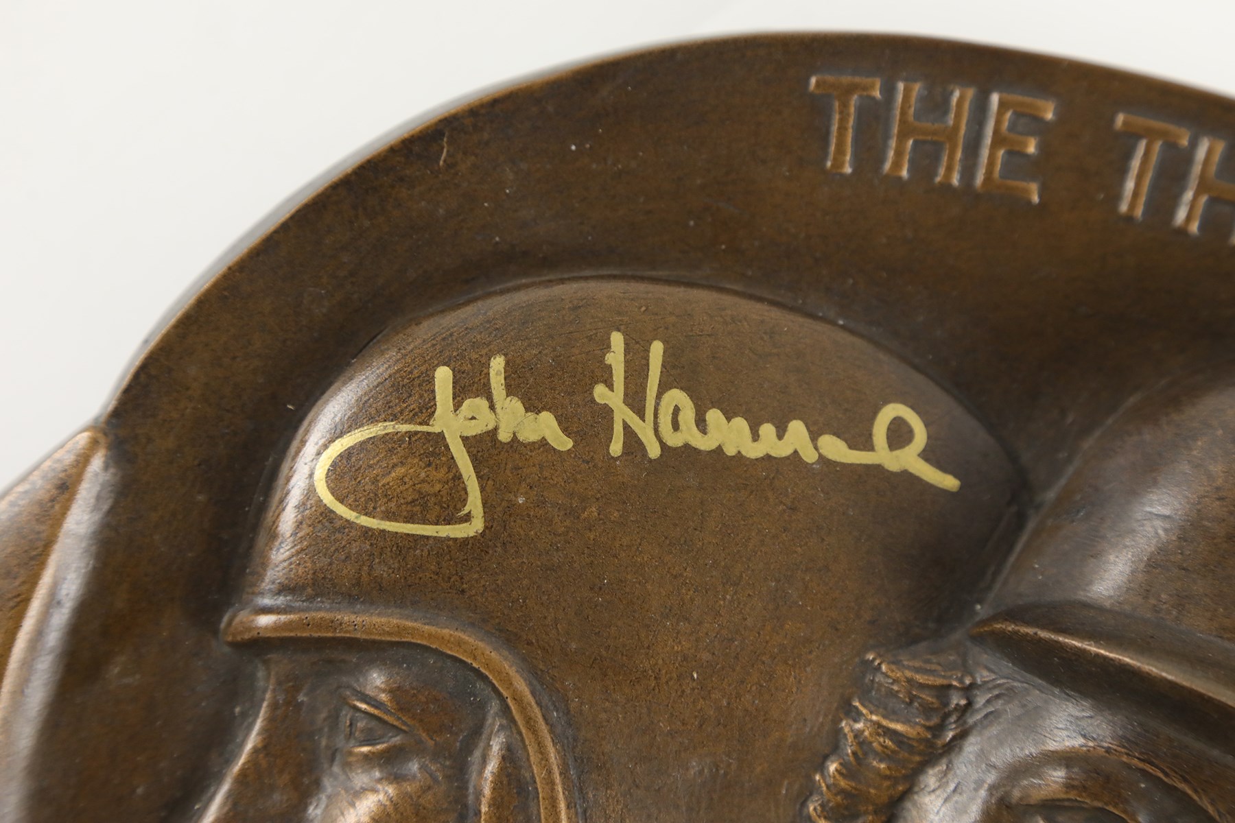 The offered signed award has raised sculpted images of Munson, John Hannah, and an unidentified woman athlete. The award reads, "THE THURMAN AWARD/Association for the HELP of Retarded CHILDREN." A 1x3" plaque at the bottom of the award reads, "JOHN HANNAH/1983." The MUNSON AWARD is 13.5" across and it is 10.75" high. The metal award weighs eight (8) lbs., 1.5 ounces. Using a fine-tip marker that wrote in gold-colored ink, Hannah signed his name on the raised football helmet in the sculptured design. The award is in EXCELLENT condition.