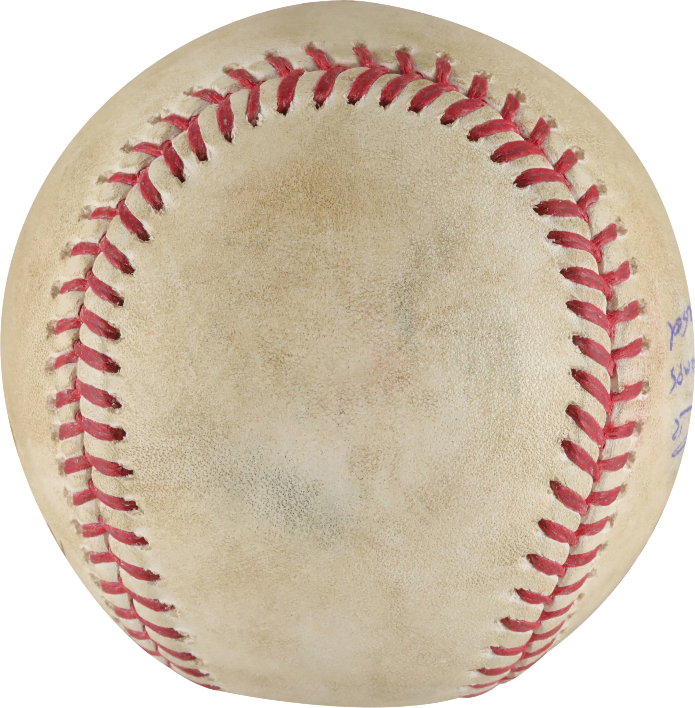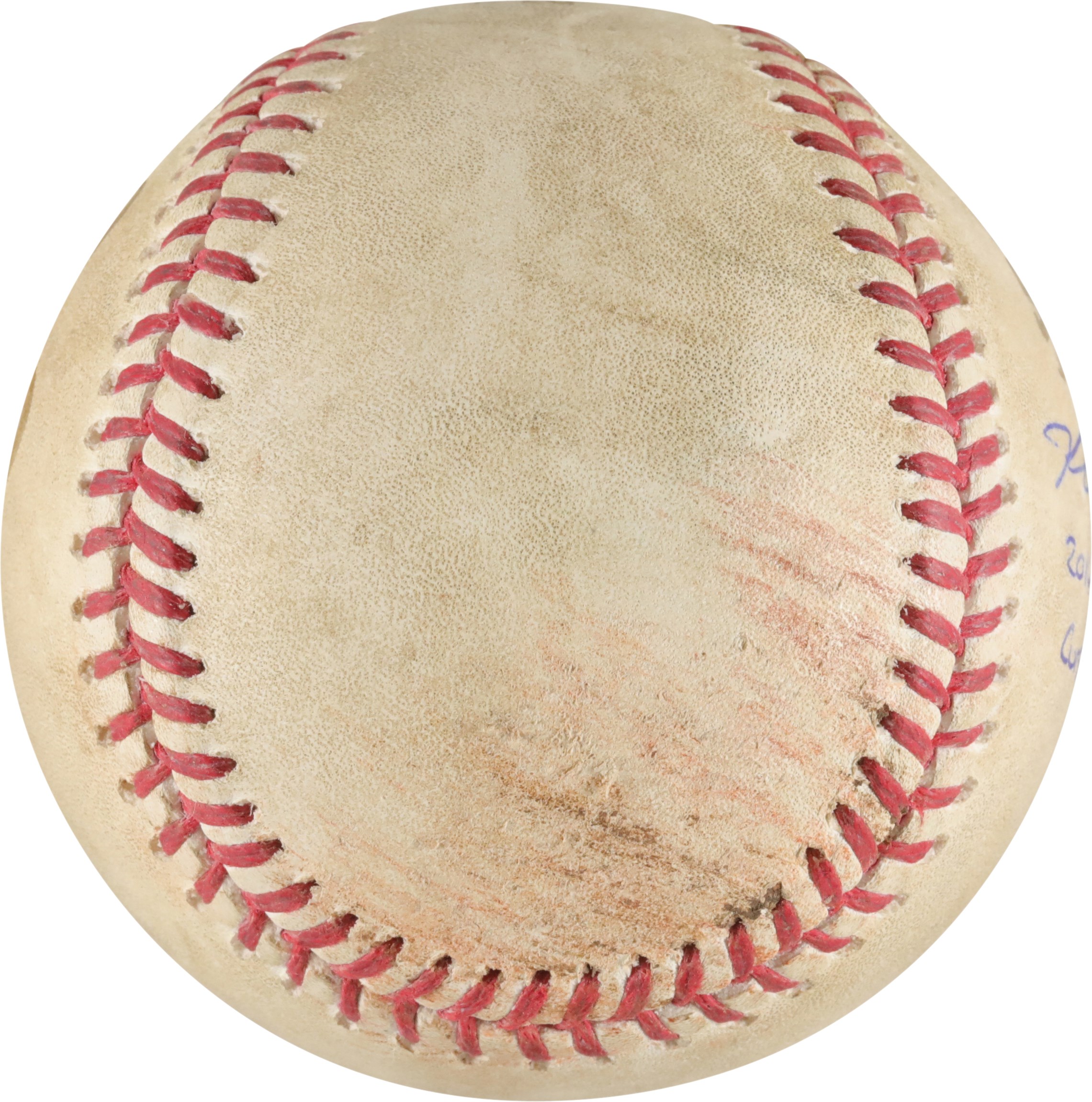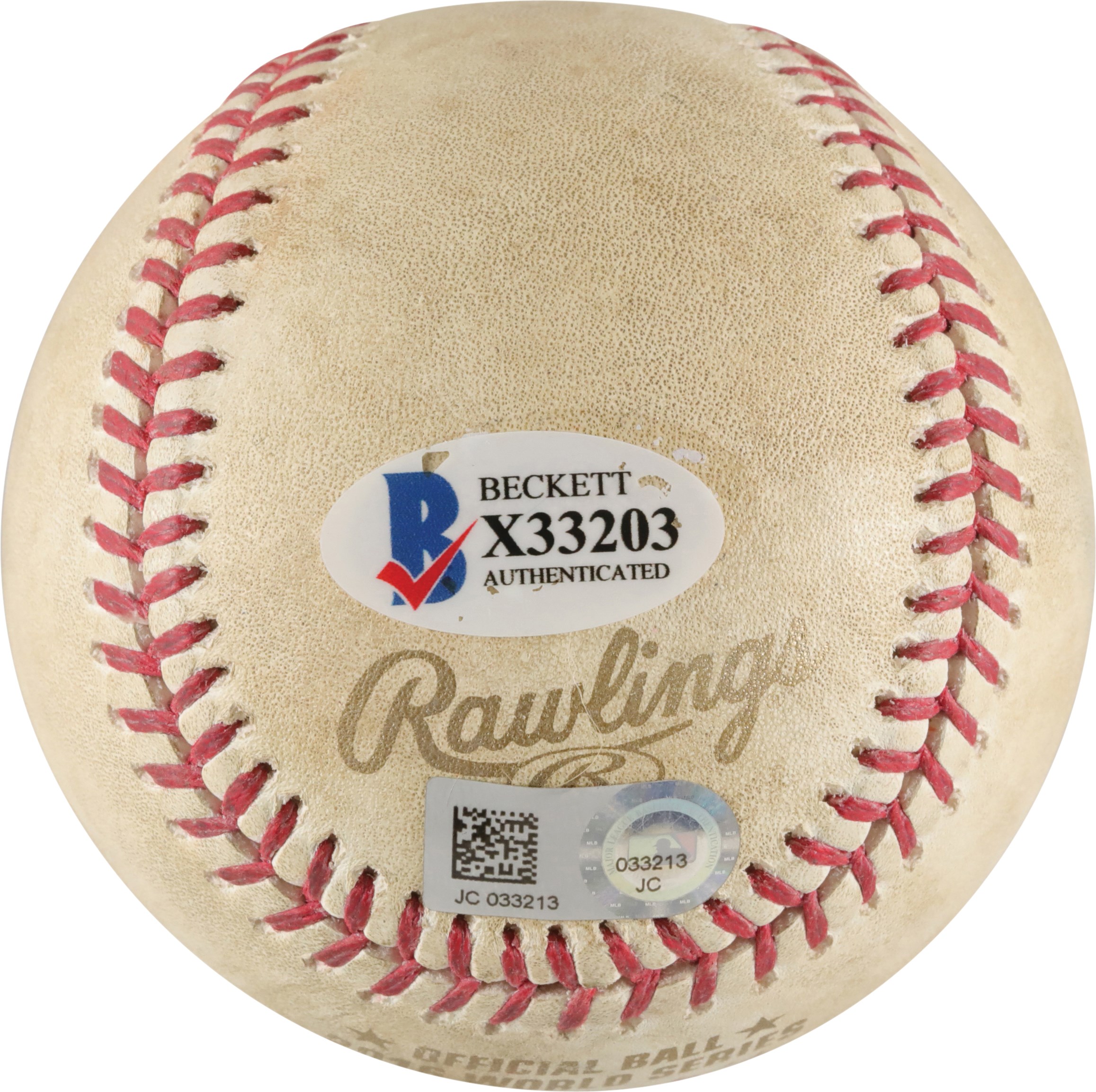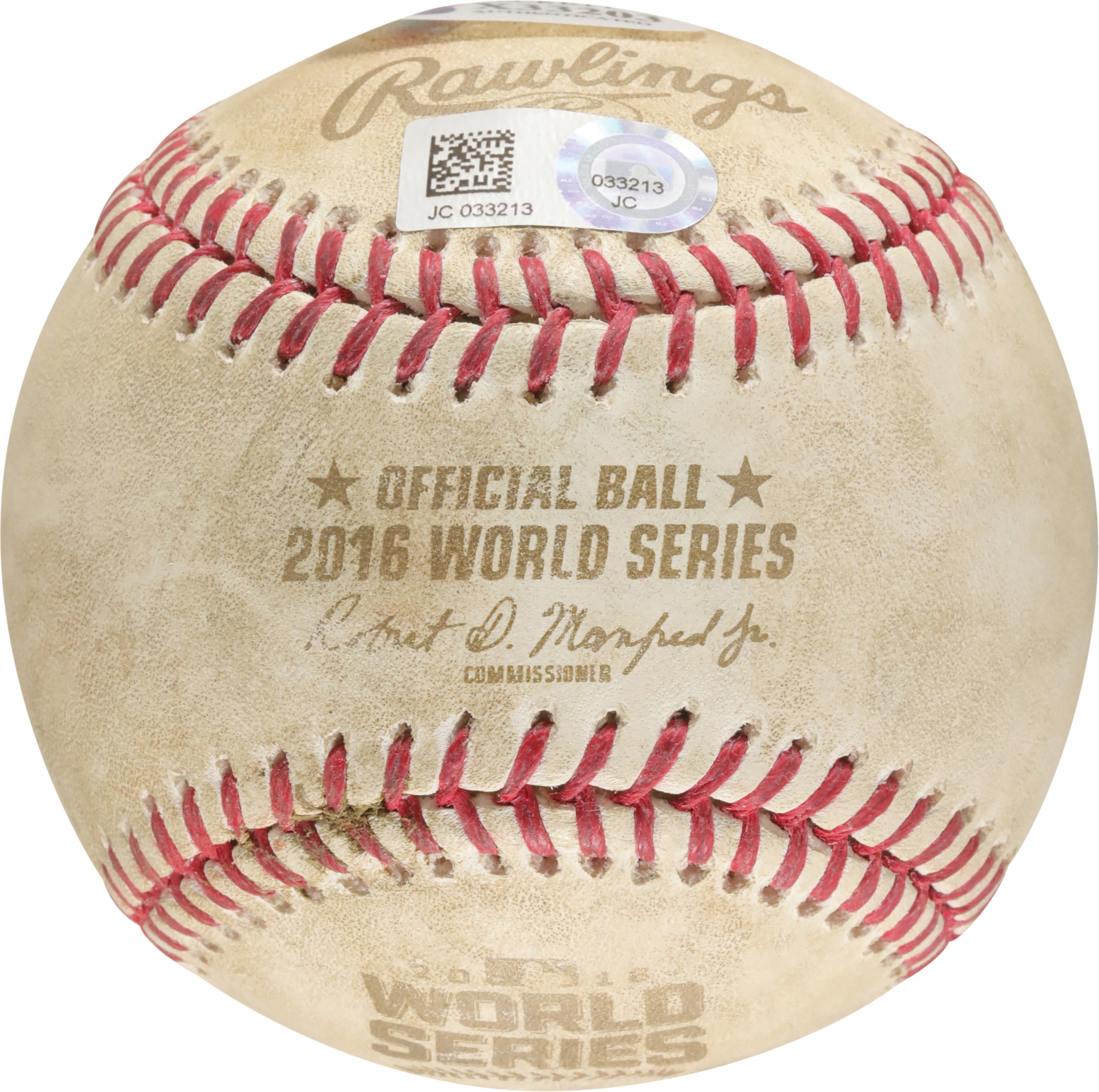 Lot # 641: 2016 World Series Game 1 Kyle Schwarber Signed & Inscribed Game Used Baseball (MLB & Beckett)