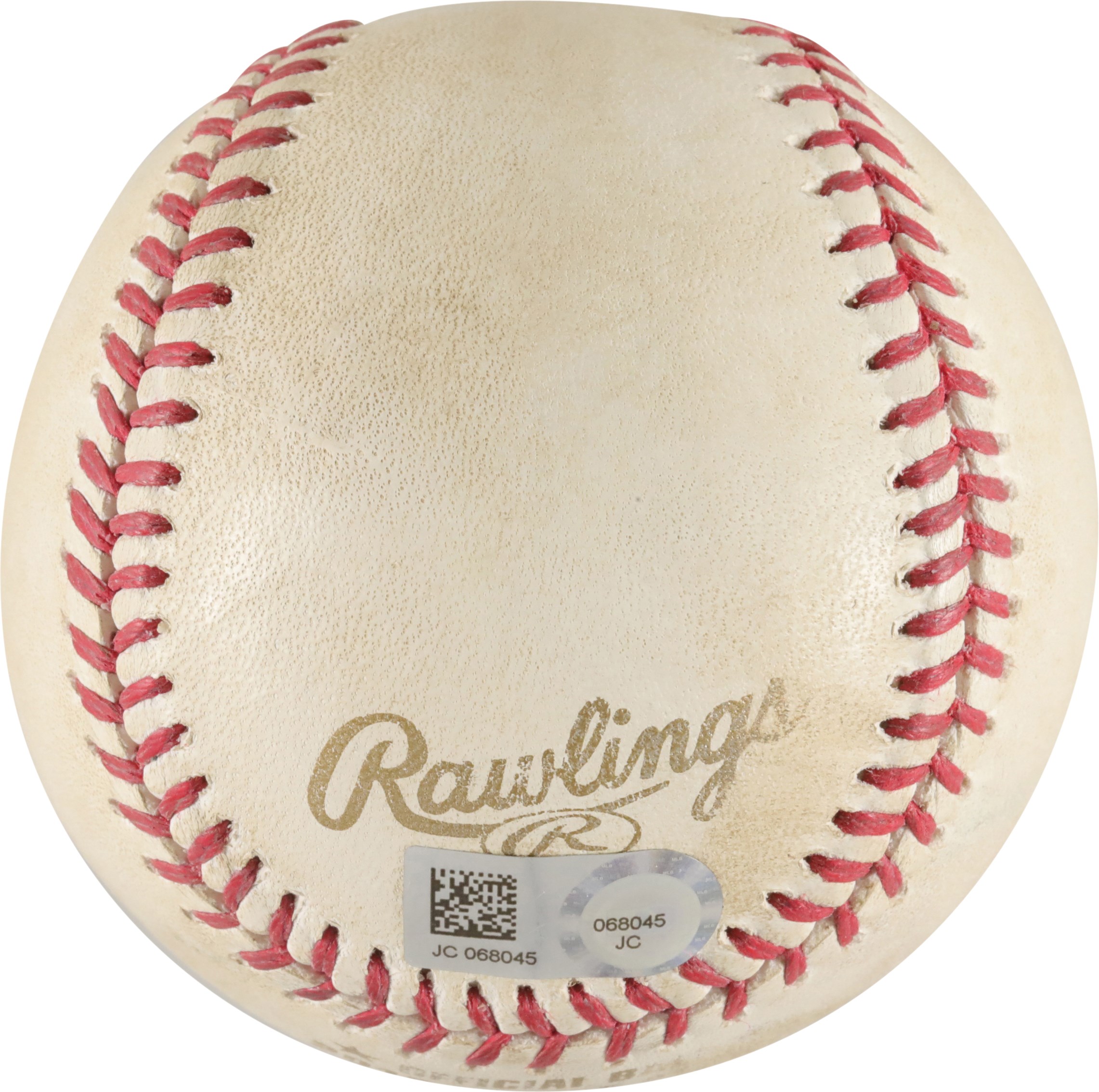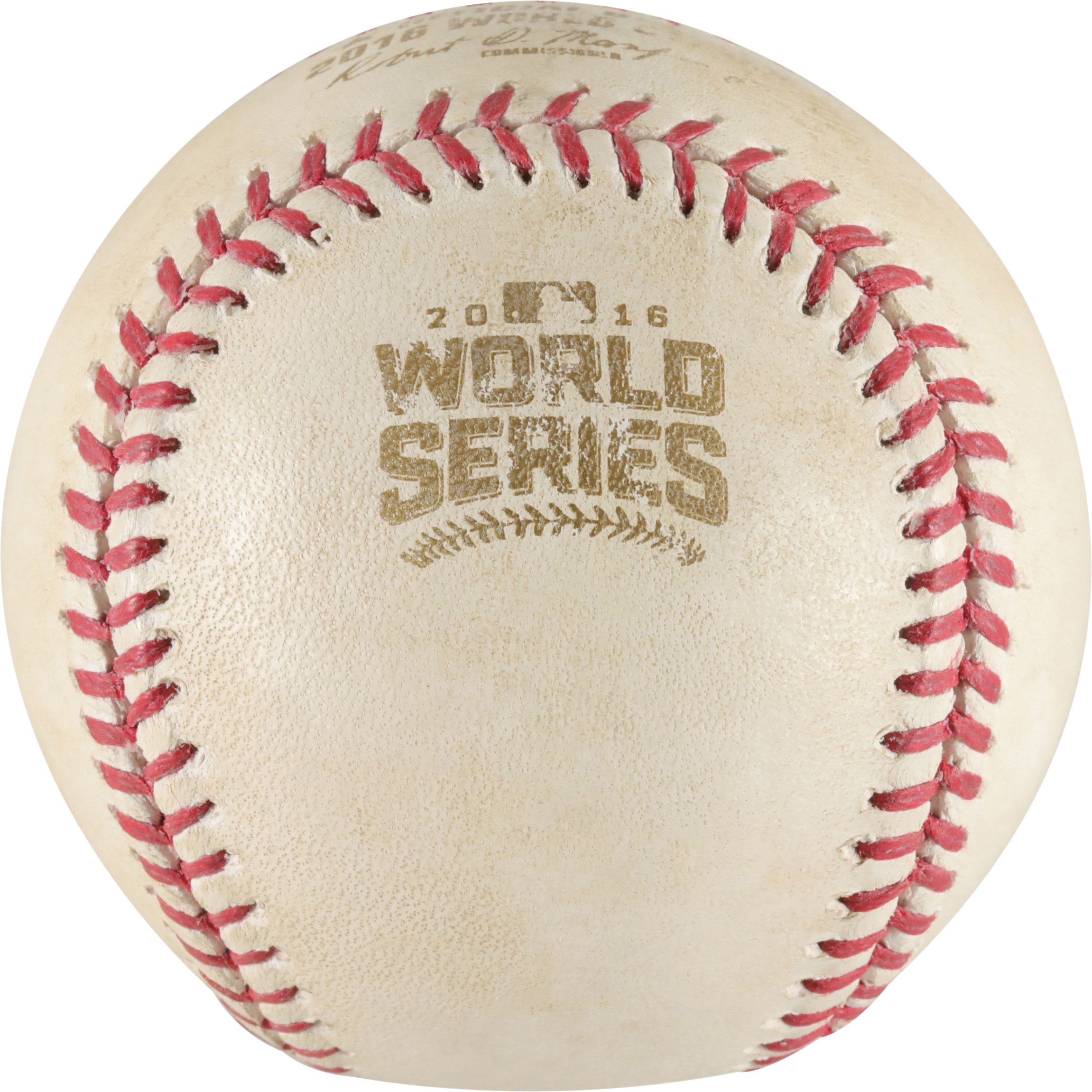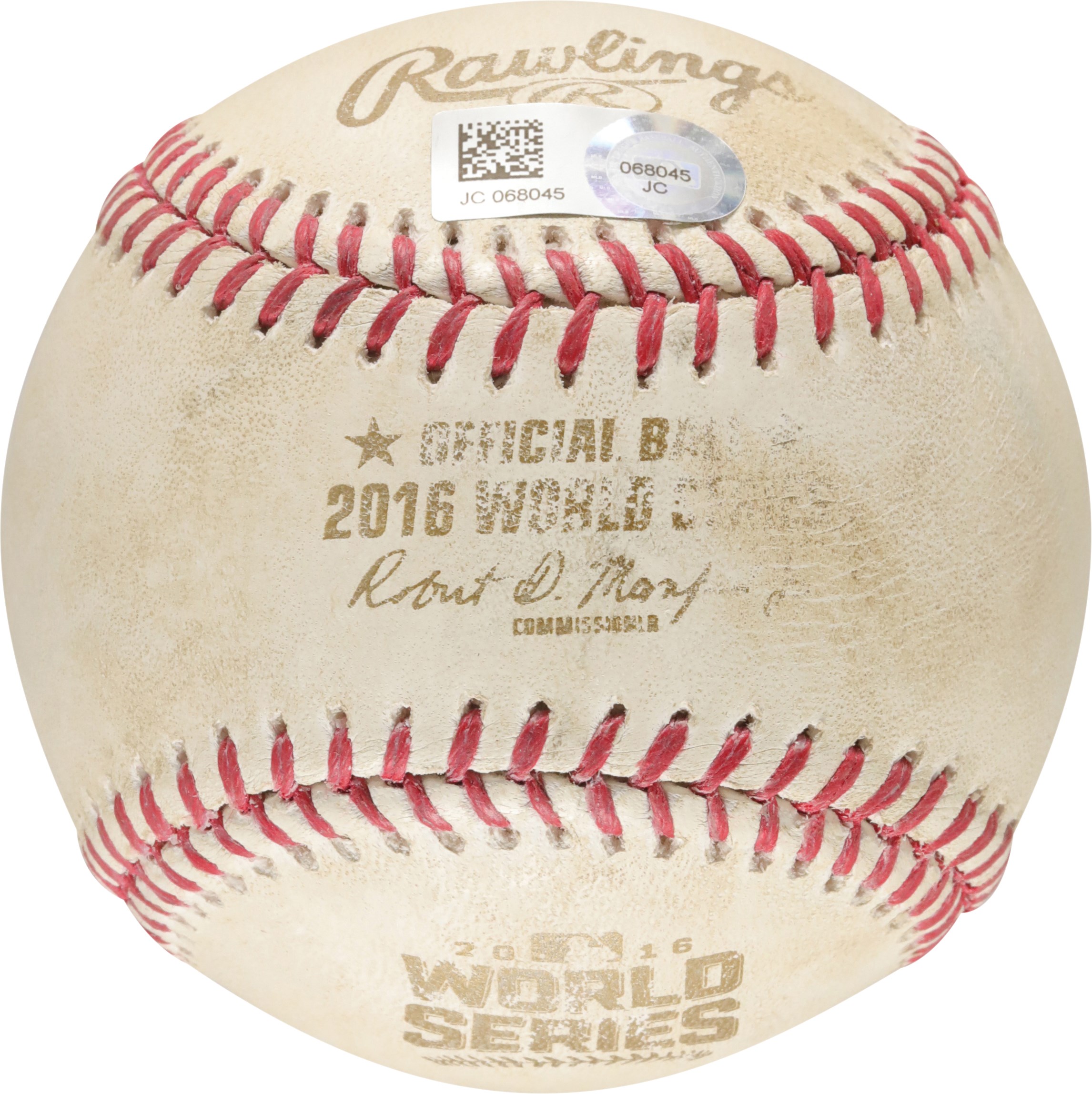 2016 World Series Game 2 game used baseball. This ball was pitched by Zach McAllister to Anthony Rizzo in the 5th inning of Game 2 of the 2016 World Series. Rizzo fouled off the pitch. The Chicago Cubs defeated the Cleveland Indians 5-1 in Game 2. A MLB hologram sticker (JC 068045) is attached to the ball.