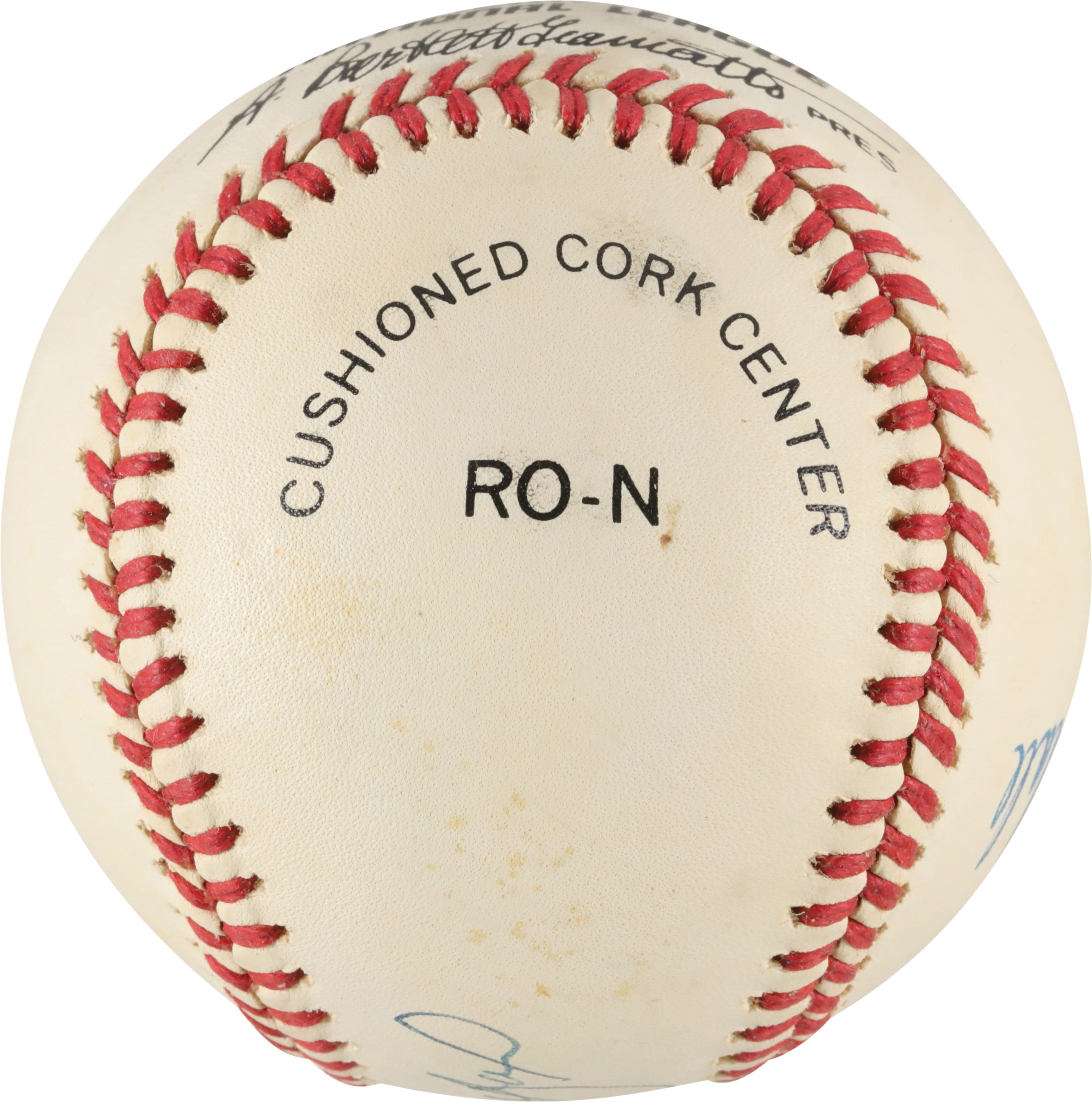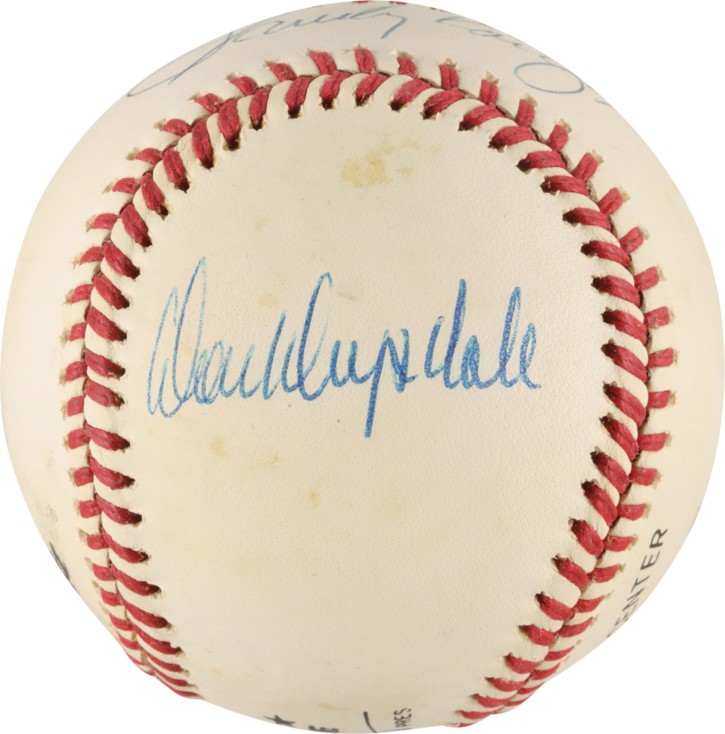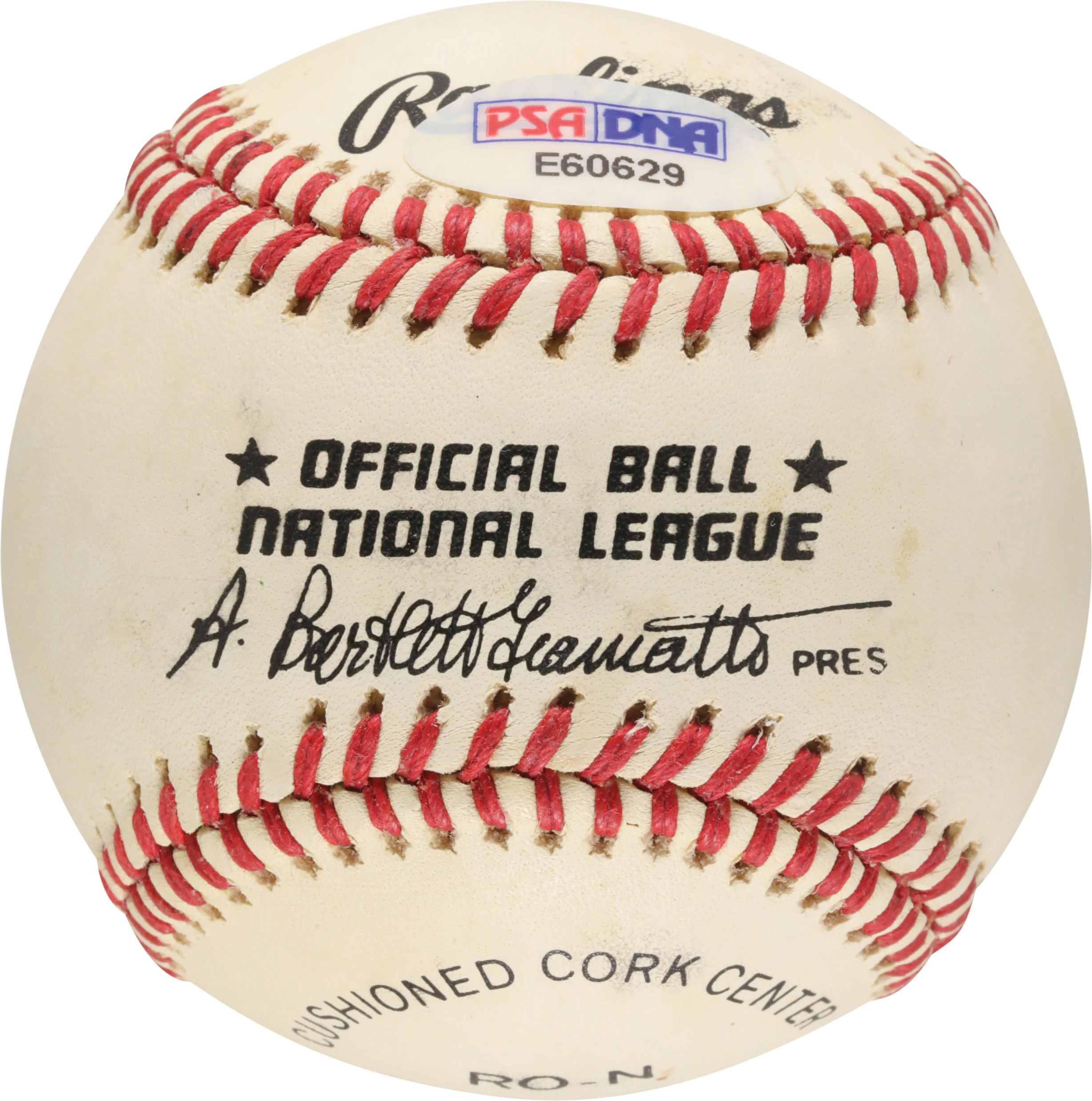 Official National League (Giamatti) baseball signed by Dodgers Hall of Fame pitchers Sandy Koufax and Don Drysdale. Both players have signed the ball in blue ink (grading 7/10), with Koufax's signature appearing on the sweet spot and Drysdale's on the side panel directly below. The ball displays light, scattered age toning and is otherwise in Excellent to Mint condition. A PSA hologram label (E60629) is affixed to a side panel, but no corresponding COA accompanies the ball (the ball is listed in PSA's database as "Authentic").