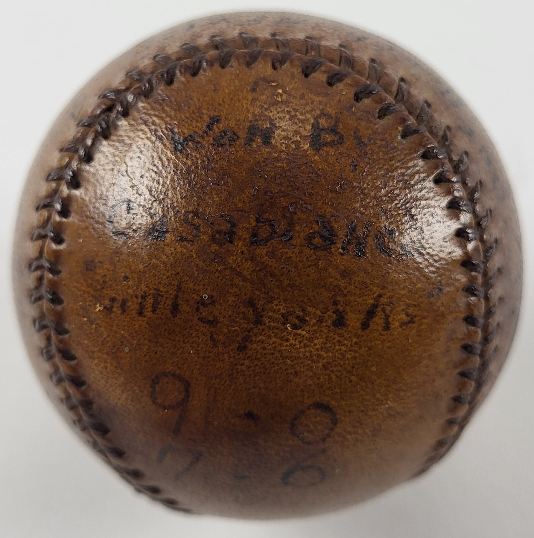 Research confirms the information recorded on the ball, as the Casablanca Yankees defeated the Algiers Streetwalkers by sweeping the best-of-three series two games to none. The hitting star for the Yankees was former Syracuse All-American Walt Singer, who hit the only Series home run (this very ball according to the printed notations) in Game 2 of the series, which Casablanca won by a score of 7-6. Each member of the winning team received an autographed baseball by Dwight Eisenhower and the winner's trophy was made out of an unexploded Italian bomb.