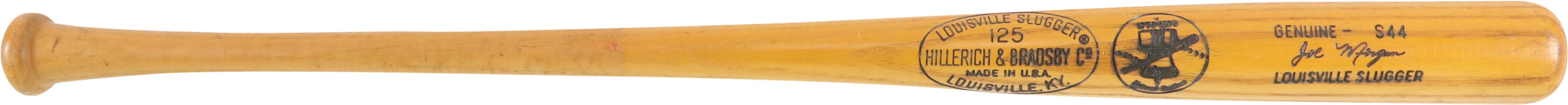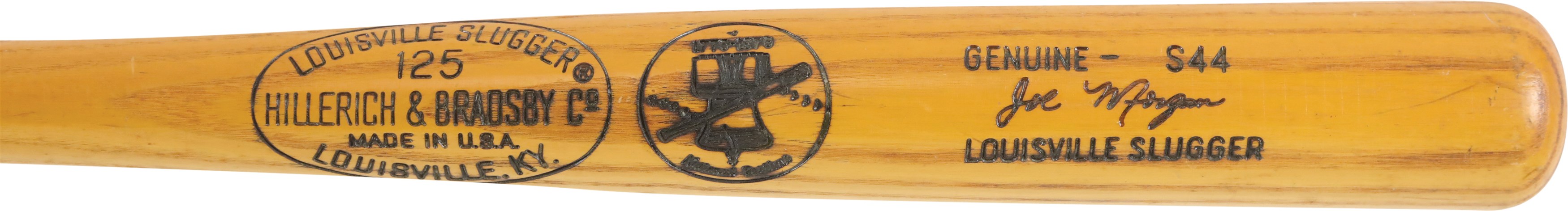 Calling all Cincinnati Reds fans! Louisville Slugger S44 Joe Morgan bat measures 34 5/8", weighs 32 ounces and features the sought after Bicentennial stamp on the barrel along with a Joe Morgan facsimile signature. Professional Model Bat shows zero use but does have a hand written "8" on the knob in black marker.