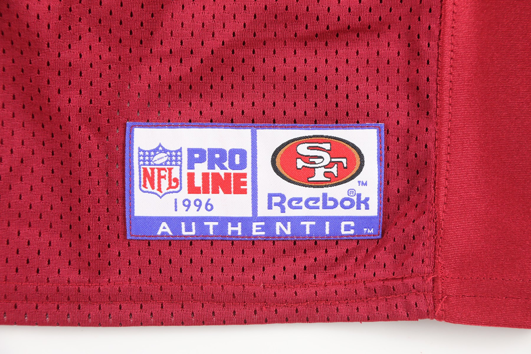 San Francisco 49ers home jersey issued for use by Jerry Rice during the 1996 season. This jersey was never worn by Rice, but the reason he never wore it is directly related to its provenance. The jersey has been consigned by the former National Sales Manager for Reebok, the company that manufactured the San Francisco 49ers jerseys in 1996. Every year, Reebok produced extra jerseys for the clubs it serviced in case any were lost or stolen. This was the extra produced for Rice that year, but it was never called into action. As a result, our consignor kept it after the season as a souvenir and it has remained in his possession since that time. It must be noted that the offered jersey is identical to the ones worn by Rice during the 1996 season, making it an affordable example for budget-conscious Jerry Rice collectors.