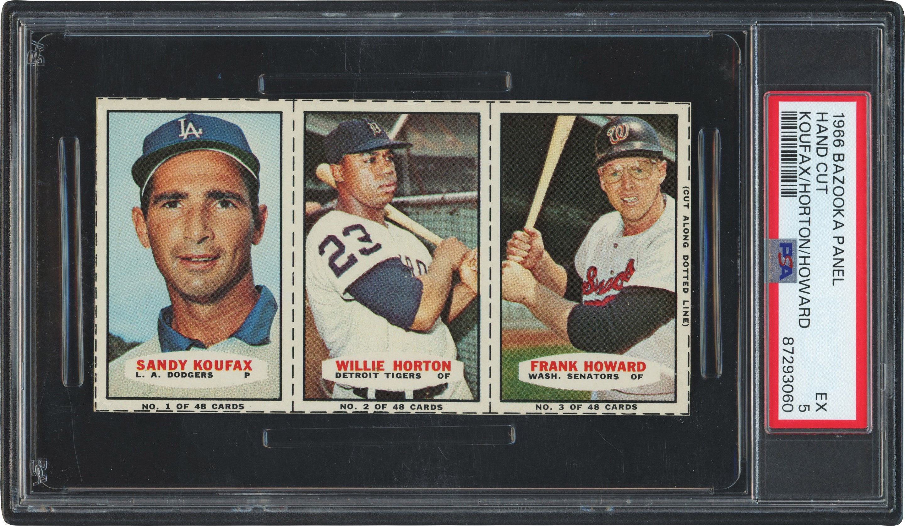 Lot # 113: 1966 Bazooka Panel Sandy Koufax/Willie Horton/Frank Howard Hand Cut PSA EX 5