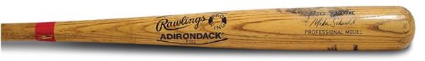 Hardwood wielded by the Phillies Hall of Fame third baseman in the season which earned him his third MVP award. This Rawlings Adirondack 154A is an unmatched gamer from baseball’s all-time greatest third baseman. Nice use with dark and heavy ball marks around the sweet spot. Handle is cracked with a small piece missing. His #20 written in black marker on knob. Knob is stamped with “154A 148 6”.