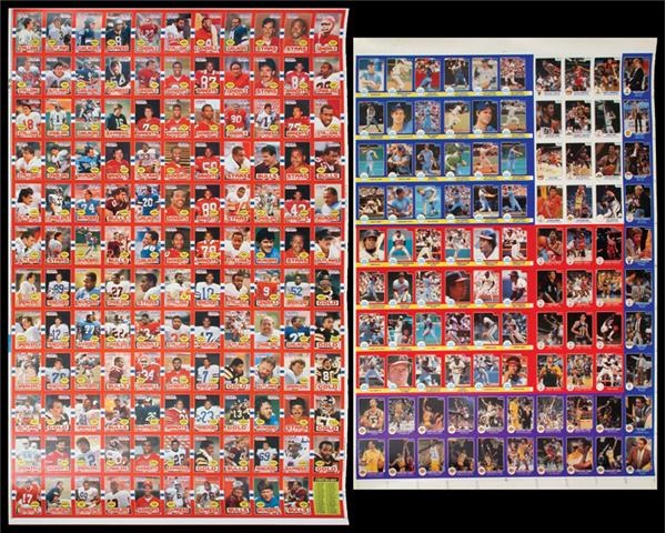 Quantity, quality, variety, diversity what more can you ask for? Three-dozen, full uncut sheets highlighted by a 1984 Star mixed sports sheet with two different Michael Jordan cards (one each from the All-Rookie and Rookie of the Year Sets) and the complete, eighteen card Kareem Abdul-Jabbar set. Another highlight is a 1985 Topps USFL uncut sheet containing a full set. Twenty-two baseball sheets include: Five 1981 Donruss (full set), six 1989 Topps (full set), eight 1990 Topps (1 full set + 2 extra), and three 1992 Topps. Nine football sheets include: Four 1981 Topps (full set w/ Montana Rookie), two 1983 Topps (Lawrence Taylor 2nd year), three 1988 Topps (full set). There is also four 1989/90 OPC hockey sheets (two Joe Sakic rookie cards). Overall the lot grades NRMT to Mint with the exception of the ’84 Star sheet which grades EX-MT.