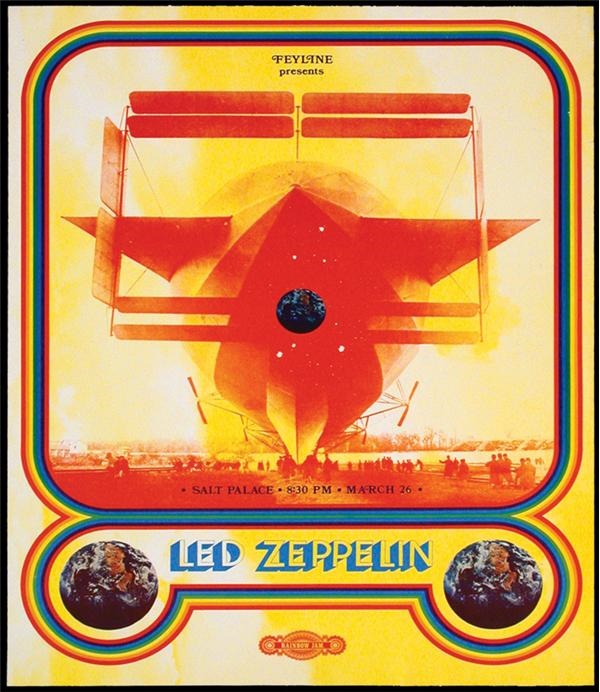 Promo poster is from March 26, 1970 Salt Palace show in Salt Lake City, Utah. Great image of a Zeppelin, on quality card stock measures 18x23”. This was a one-day show, early in their career. This was only the second time they toured the U.S. Condition is EX+.