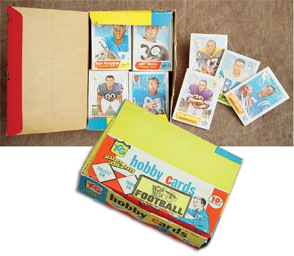 Presented is an artifact that would excite even the most advanced archaeologist! This is a near complete box of 1968 Topps football 2nd series cello packs. The second series is a little tougher to find than the first. There are 28 of 36 packs present. Packs are NM-MT to Mint on average except for six packs, which seem to be slightly miss-wrapped at the bottom. Represented in this series is Bob Griese’s Rookie, Jack Kemp, George Blanda, Fran Tarkenton, Mike Ditka, Len Dawson, Ray Nitschke, Fred Biletnikoff, Don Maynard, Jim Taylor, Floyd Little Rookie, Lance Alworth, etc. Two packs feature stars Mike Ditka on one and Roman Gabriel on the other. It appears that there is 11 cards per pack and each pack also comes with one of sixteen ’68 Topps football posters. The provenance behind the box is fantastic as two packs were opened when we received it and all 22 cards look gorgeous! Included were Floyd Little’s Rookie, Alworth, Jim Taylor, and Nitschke! It is very rare to find a near complete cello box like this as many have been opened for grading purposes or socked away by those investment-savvy unopened collectors. Outstanding.