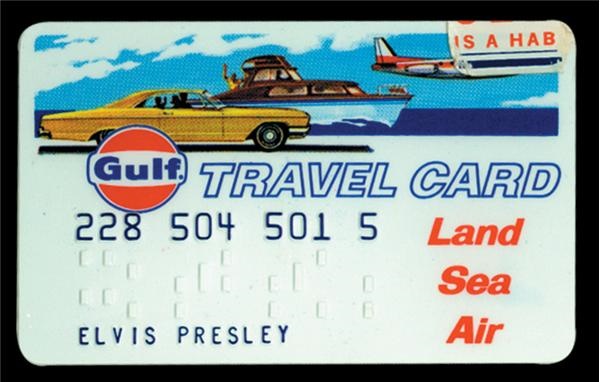 Actually, quite a pretty card with a very 1960s image of an automobile, boat and airplane. Gulf Travel Card is in the name of Elvis Presley and comes with the original envelope postmarked March 28, 1969. The card is not signed, nor do we see a place for a signature on the back. Made of plastic, measures 2.25x3.5”. Mint condition.