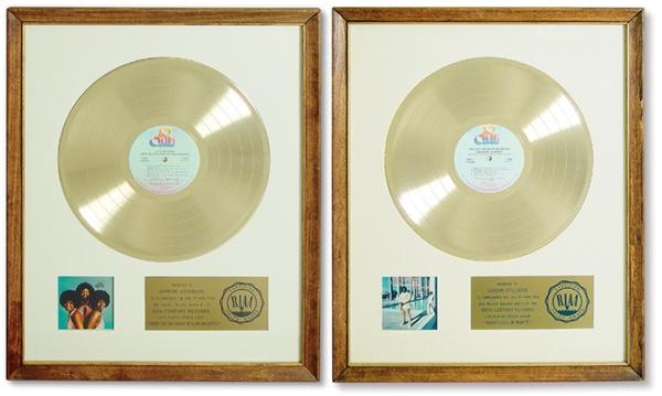 Offered are two RIAA certified gold records from the man with the world renowned voice. What he accomplished with "Rhapsody in White" was completely ground-breaking. Never before had soul music been produced for a full orchestra. Of course, the album went gold. Offered is the white matte gold record, "presented to Gordon Stulberg to commemorate the sale of more than one million dollars worth" of "Rhapsody in White" as well as his white matte gold record for the 1973 release, "Under the Influence of Love Unlimited." Both are NRMT.