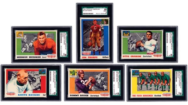The set reads like a Who's Who from the early days of the football world. Set averages NRMT but the keys make this one special and grade as follows: #1 Hickman SGC 88, 12 Graham SGC 84, 16 Rockne SGC 84, 20 Baugh SGC 86, 27 Grange SGC 80, 37 Thorpe SGC 88, and 68 The Four Horsemen SGC 88.