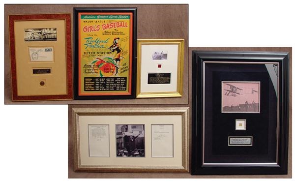 An incredible group of items, each with its own “piece of history”, including: (2) documented pieces of the Berlin Wall; a Charles Lindbergh flown mail and medallion display; a piece of the Wright Brothers Plane with Smithsonian Provenance; (3) documented pieces of the Titanic removed during an expedition;a piece of Skylab encased in Lucite; piece of the White House removed during renovations; a section of the Graceland fence; piece of the Grand Ole Opry stage; an LA Lakers Forum floor display; Amelia Earhart section of historic plane display; (3) Thomas Edison recordings; (3) Mini Badges including DEA, FBI, and Treasury Department; (10) George Washington actual handwriting displays; (2) Stonewall Jackson actual handwriting displays; (2) Thomas Edison actual handwriting displays; Orville Wright framed autograph display; a vintage Womans League baseball poster signed by five original members; a signed publicity photograph of Dodi Fayed; a carbon of Astronaut Jim Irwin's hotel receipt; (2) Einstein Theory of Relativity lithos; (4) embossed "President and Mrs. Richard Nixon" placecards; and Richard Nixon signed "Resignation" and "Explanation" letters. Accompanied by LOAs. The majority of the items are framed, sizes vary.