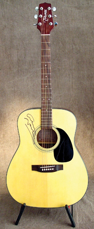 A Takamine G-240 acoustic guitar personally owned and signed by legendary rocker Graham Nash. The guitar was donated by Nash to a charity, and signed for that particular charity's auction.