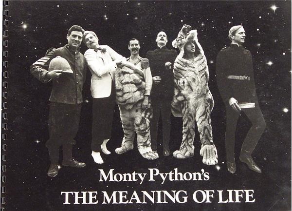 Presentation book copyrighted 1982 contains 26 pages of gigantic (12x16”) stills from the movie, The Meaning of Life, widely considered to be the best of the three Monty Python films. Glossy photos on Kodak paper include black & white as well as color. EX.