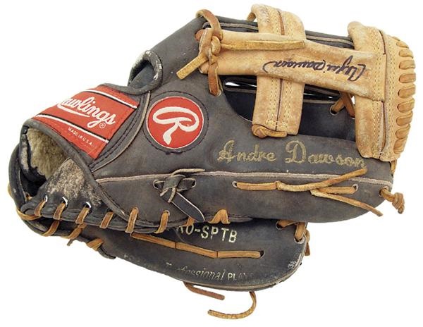 There’s only one word that describes this glove from the future Hall of Famer, “Awesome”. His black leather “Rawlings PRO-SPTB” glove has logged countless innings as displayed through its outstanding use, most evident on the wrist and palm areas. Tagged with his black sharpie signature along the brown webbing and embroidered with “Andre Dawson” on the thumb in white. LOA from Dawson.