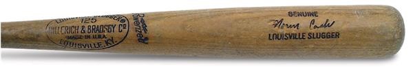 His best season (1961) was overshadowed by attention given to Roger Maris’ 61 home runs. Norm Cash led the league in batting average with 41 HR’s, 193 hits, 132 RBI’s and 119 runs scored. The Detroit Tigers slugger never achieved anything resembling those numbers ever again. This 1972 Hillerich & Bradsby C263 was used for his last All Star season. Shows strong amount of use with several ball marks and nicks around the barrel. Hardened pine tar is caked onto the handle. His number “25” written in black marker on the knob.