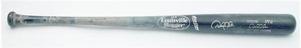 Whether he’s guarding the gap between third base and second or swinging a bat at the plate, Jeter is about as active as any player in the Majors. This black Louisville P72 is a great testament to that, riddled with ball marks and Derek Jeter’s signature game use. There isn’t an inch on the barrel that didn’t make contact or at least partial contact with a baseball. The handle, nicely cracked, is covered with Moto stick, rosin and dirt.The piece de resistance is a perfect silver sharpie signature right on the good part of the barrel. LOA from Steiner.