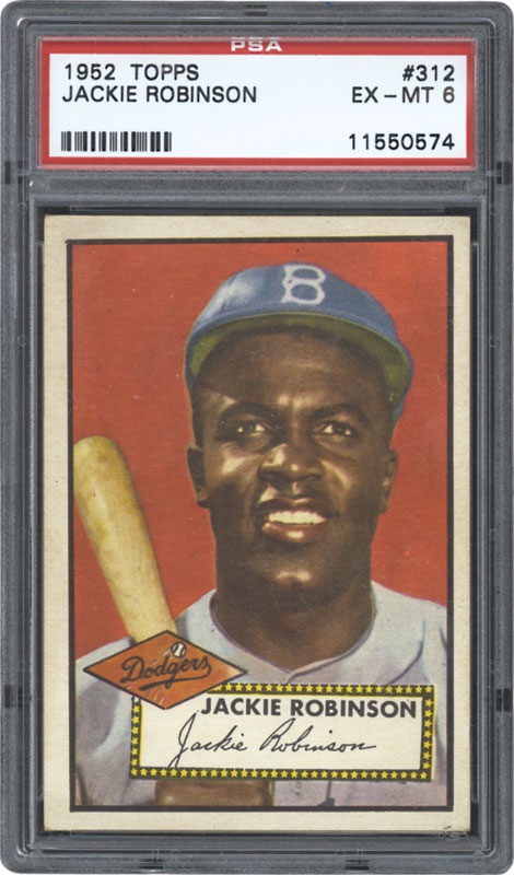 A beautiful picture of Jackie is set against a deep, red background. This ’52 high number is well centered on the front and has virtually perfect centering on the reverse. Mild, even corner wear is the reason for the EX-MT grade. High-end PSA 6 example of one of the best looking cards from the classic ‘52 Topps set!