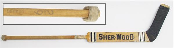Ken Dryden and the Canadiens dominated the most of the 70’s. This is a great piece from those cup winning days. The Sher-Wood is stamped "29 Dryden" on the shaft and in good condition.