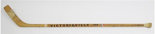 Ultra rare game used stick signed by the New York Raiders / Golden Blades team. The New York based team lasted only a year and a half before moving across the river to Jersey leaving behind only a handful of pieces to remember them by. This Victoriville Pro has Gerry Cosby's tag on the shaft and nineteen signatures covering its surface. Uncracked and in great condition.