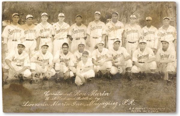 The earliest team photo of this thriving Winter League club, from the year they were founded. Shown is all time Negro League legend, Josh Gibson (manager), as well as Billy Bird & Dick Seay. The Crabbers were the most successful Winter League team of the 1950’s, boasting such legendary players as Roberto Clemente & Willie Mays during that era. Lasorda, R. Jackson, Bob Gibson, Cepeda & T. Perez are also a part of the storied history of this WL franchise. Postcard photo is one of 8 in a set of the 8 Winter League teams. Extremely scarce. Some staining on back and some light crazing on front, which is only visible upon close examination. Otherwise VG. Very slightly restored.