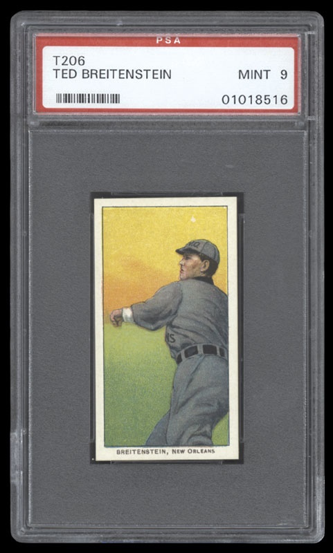 Brilliant Mint example of this St. Louis native who tossed a no-hitter in his first major league start is the one-and-only highest graded example from PSA. Just looking at it will take your breath away, as you view its nearly flawless preservation framed by almost perfect centering. Pristine front and an “Old Mill” cigarette advertisement on verso. An opportunity at such a shining example is something that comes along once in a lifetime.