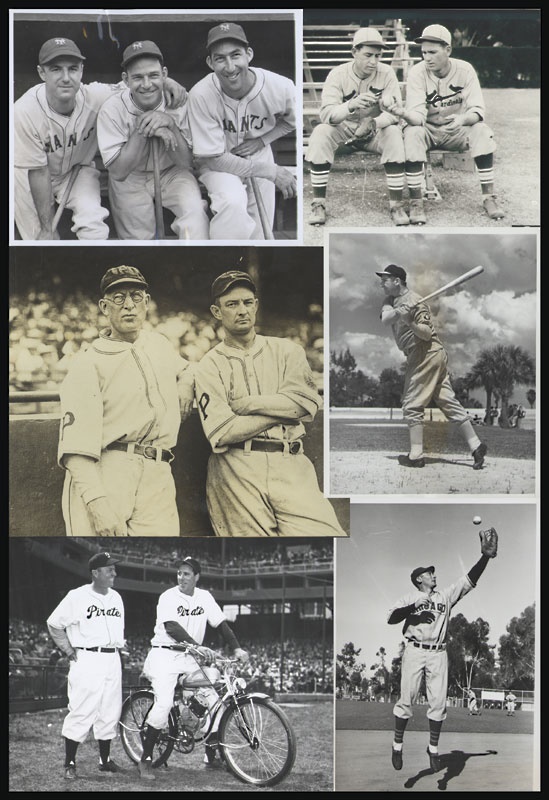Very meritorious set of 23 vintage wire photos as early as 1925 and as late as 1963. Mostly Associated Press with some Acme News, United Press & Wide World. Includes Paige, Vaughan, Ott, Young, Cronin (3 - one while playing for Red Sox in ’39, one with John Pesky has light foxing), Speaker while golfing, Greenberg, Musial & Rube Walker action shot (Musial sliding into home), Koufax, Mantle (2), Campanella in ’55, Alston & Lopez, Bob Hope with Bill Veeck in clinic after leg amputation, Medwick, Vance, Lombardi, Manush, Stengel, Grove, Fred Clarke & Bill Mckechnie (’25), Dean brothers & Lazzeri. Some with original captions still attached. Overall EX-MT.
