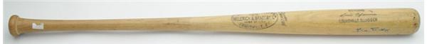 Bat wielded by Chicago White Sox Hall of Fame shortstop, Luis Aparicio during his heyday. Hillerich & Bradsby S44 shows light but definite use. The clincher is a near perfect blue ink signature on the barrel from New York Yankees Hall of Famer, Bill Dickey. Signature grades a “9.5” out of a possible 10. COA.