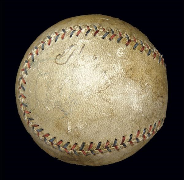 Lot # 1384: 1920 Bill Wambsganss World Series Triple-Play Game Used Baseball