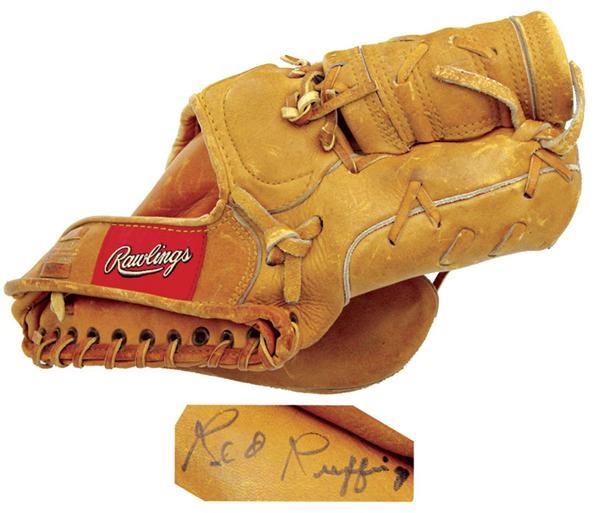 Rawlings glove was used by Hall of Famer Red Ruffing. Originally emanates from the famed private collection sold by Lelands over a year ago. Shows excellent use and is in fine condition. Signed in black ink on outside of pinky. Originally obtained from Ruffing. LOA.