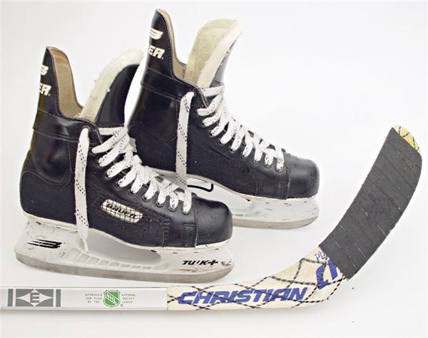Lot # 2065: Brett Hull Game Used Skates & Stick