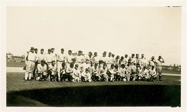 The team widely recognized as the single greatest squad in the history of the Majors, a.k.a., “Murderer’s Row”, shown here in their entirety during Spring Training. Could they have known then that they would be destined for one of the most historic seasons of all time? Photo is small, but its meaning is sacred. EX+ condition except for pencil writing on back denoting where this photo was taken.