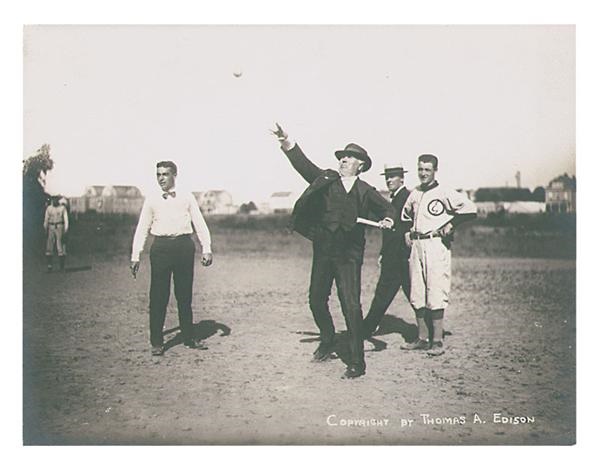 Lot # 1298: Circa 1915 Thomas Edison Throwing Baseball Photograph (8.5x6.5")
