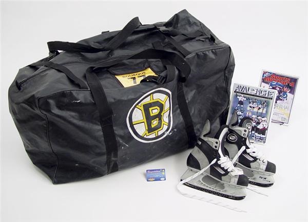 Only for true Ray Bourque fans, collection includes Ray’s last Boston Bruins equipment bag that he carried over to the Colorado Avalanche. Also includes his game used Bauer Vapor 10 skates with 2001 Stanley Cup Finals program and lineup card from his last NHL game. Program is signed and comes with a special issue of Sports Illustrated, presented to fan’s at the game.