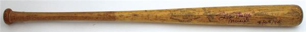 Polish Hall of Famer, Stan Musial swung this “Adirondack Personal Musial Type” 15B while earning his status as Player of the Decade. Great McLaughlin-Millard, Dolgeville, New York” stampings. Heavy vintage use in the form of aged ball marks and rack scuffs, as well as cleat marks. More recent signature on the barrel reads, “Stan ‘The Man’ Musial - 8/28/94.” “15B” stamped on knob.