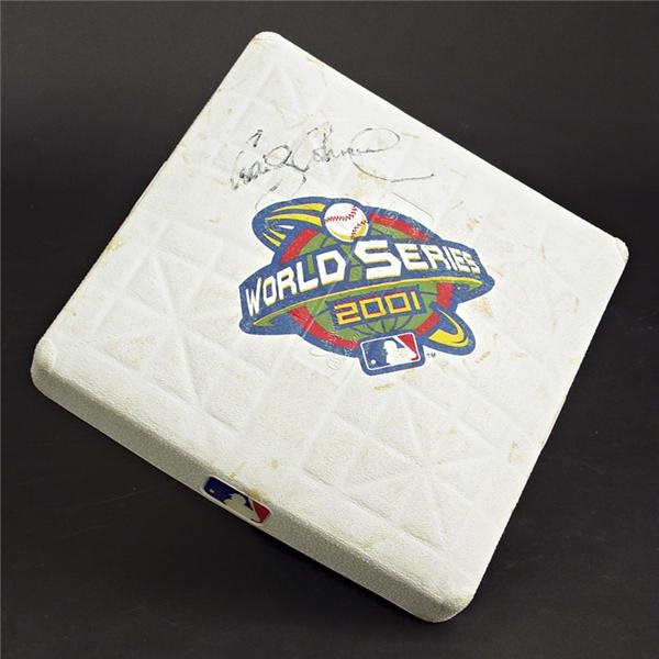 Taken straight out of Bank One Ballpark and authenticated by Major League Baseball, this second base was used in Game 6 of the 2001 World Series. Marked underneath in marker, “WS 6 Set D 2B” and “LF” with an arrow pointing toward left field. Signed on top by Craig Cousell. Affixed hologram sticker from MLB.