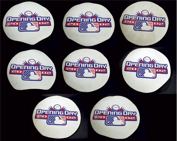 Lot # 1151: Collection of (8) 2002 Opening Day Game Used On-Deck Circles
