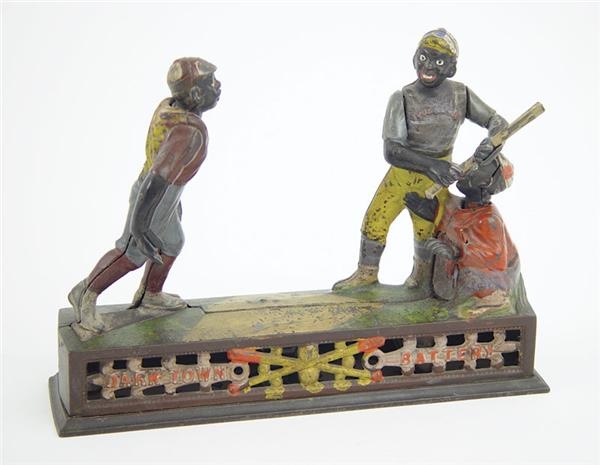 One of the most popular of all mechanical banks. This one still works like a dream, firing coins into the catcher's belly with complete reliability. One of the nicest condition ones we have seen, the paint is about 80%. A special piece of Americana.