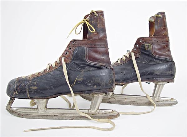 Offered are the boots & blades worn by Audrey Clapper as he and his bench mates captured their first Stanley Cup Championship. Black leather size 9 CCM uppers with CCM Cyco blades. Inside are “Wilkie’s Sure-Hold” ankle supports with 1929 patent date stamps. Each boot bottom is stamped, “Brown’s Sports - Toronto” (longtime NHL supplier). Until recently, this pair has been in the possession of a single owner, a member of the late Dit Clapper’s family who has included his LOA. Before that, these skates used to be on display at the Hockey Hall of Fame in Toronto. Included is the descriptive plaque from Clapper’s Hall of Fame display.