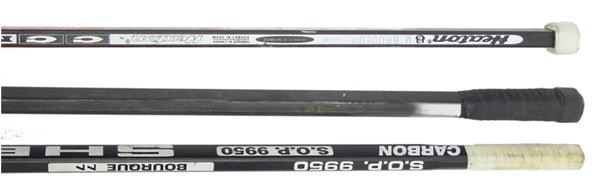 Three of the biggest names in hockey are included in this game used stick collection. 1) Ray Bourque -Sher-Wood SOP 9950, great condition and signed on the blade. 2) Martin Brodeur - CCM, Heaton, stamped “15 AOUT 2001”, great condition, signed on shaft. 3) Mario Lemeiux - Koho Revolution, stamped “0857 5”, good condition.