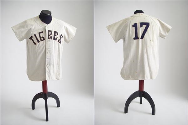 Gray flannel Marianao Tigers jersey was worn by Minnie Minoso during the 1946-47 season of the Cuban Winter League. Minoso was the first black player to don a Chicago White Sox uniform, surely one of the all time greats in Sox history, and a baseball phenomenon who played in seven decades. And this jersey, adorned with “Tigres” in arched black lettering across the chest and the number he wore that season, “17” on the verso is a unique and most important find. Minoso was 17 years old when he signed his first contract, which may be the reason why he wore the number “17” that season. The jersey shows great use and wear. It looks to have gotten plenty of use, stained with stadium dirt even after having been washed repeatedly (color faded in a few spots). Collar tagging is completely worn away.