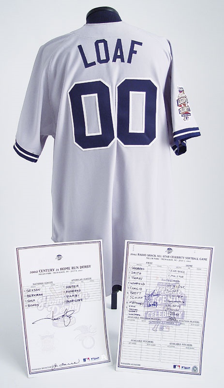 Lot # 920: 2002 Meat Loaf All Star Jersey & Home Run Derby Line-Up Card