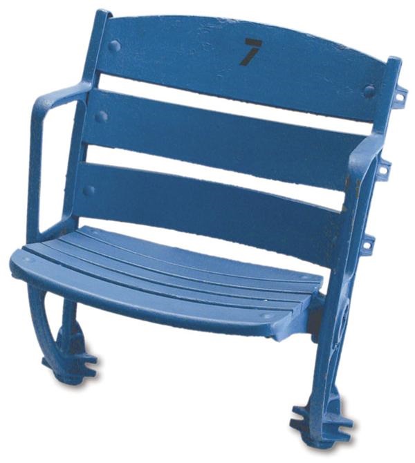 Painstakingly restored beauty was torn from its home when the renovations of the 1970's happened, but this vintage seat saw its share of Yankee glory in its time including the career of Mickey Mantle, himself. Number "7" on top slat is a perfect representation of this home grown American who came to NYC and tasted the greatest glory and tragedy. From the House that Mick rebuilt.
