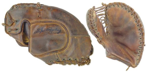 This glove was obtained many, many years ago by an early collector who went visiting with Appling at his home. The glove is signed “Luke Appling” in black sharpie on the back. “Professional Model” first baseman’s mitt is by Spalding and was most definitely used by Appling. In very nice shape, it is marvelously broken in with distinctive early vintage major league use that can never be replicated or reproduced. Glove is EX, sig is NRMT.