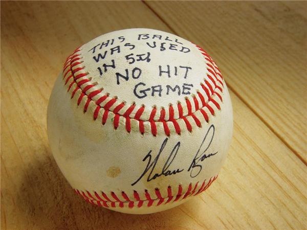 Lot # 69: Nolan Ryan 5th Game Used No-Hitter Baseball