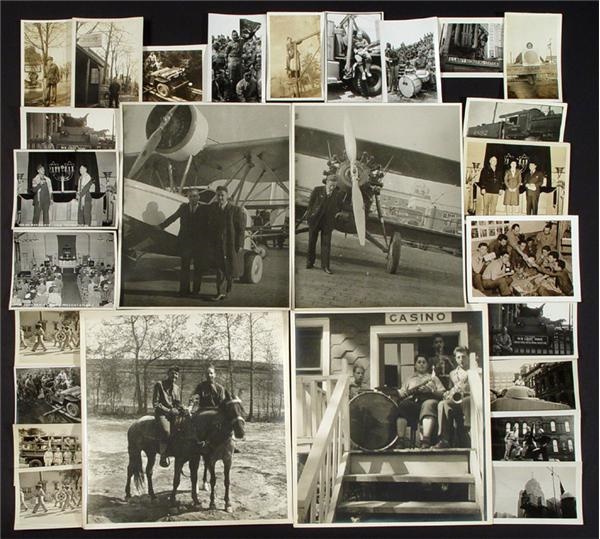 Collection includes 1350+ snap shots and 150+ large photographs (average size 8x10"). This is a low estimate of the quantity in this lot. The photographer was in the US Navy Air Corps, what eventually became the US Air Force. Lots of photos of airplanes, tanks, railroads, all kinds of transport etc. Some are of Jewish services held for the troops. They are all vintage photographs; this is a very interesting photo lot. There are multiples but still hundreds of different photographs that tell a WWII story. Condition overall EX-MT.