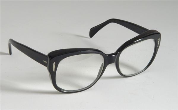 This dignified pair of black rimmed glasses once belonged to Hollywood superstar Cary Grant, the king of suave insouciance. The spectacles were given to Grant by author Curtis W. Haug and they come with a copy of a 1984 letter in which Grant refers to these very glasses.  Also included in this lot is a copy of Haug's book, "Performers At the Purple".  The glasses show some use and are NRMT.