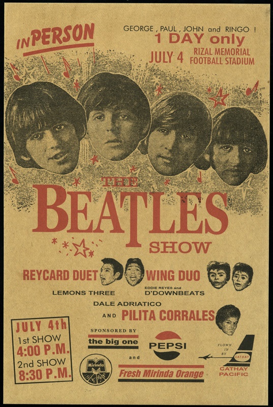 Lot # 87: Rare Beatles Manila July 4, 1966 Philippines Handbill
