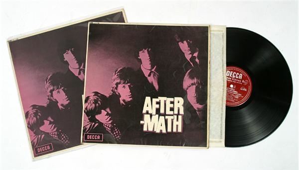 Extremely scarce first pressing mono release of the Rolling Stones' "Aftermath" LP (1966) featuring the rare "shadow cover". A Decca records release with "ffrr" on the label of the LP, the cover features the original 5 Stones in a pink shadow with "After-math" with pink shadow over the words. The more common stereo version without the shadow over the words is also included. The cover is EX-MT while the LP itself is NRMT.